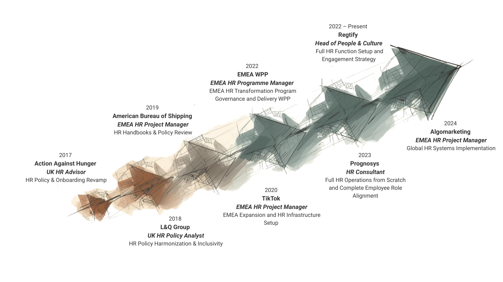 ” With over 13 years of experience in people, project, and change management, I have designed and implemented holistic HR strategies across diverse sectors. My expertise: “